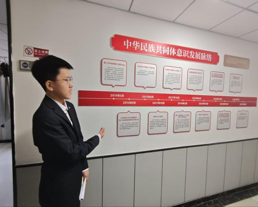 在历史脉络展区,讲解员系统梳理了中华民族共同体意识的发展历程,从2014年习近平总书记首次提出相关重大论断,到2024年党的二十届三中全会将其纳入全面深化改革总体部署,阐释了党中央一以贯之的重视与推进。