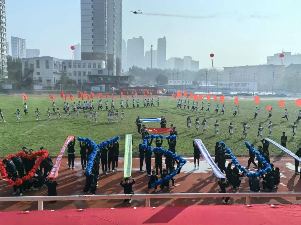 运动会开幕式上,机械工程学院方阵稳步入场,精神昂扬。RoboMaster战车沉稳领航,航模社谷天RS6直升模型机平稳飞过,释放出彩色烟迹,与拖曳彩带的纸飞机共同绘出绚烂轨迹。方队中,60余名统一着装的学生代表手持彩花与条幅,组成四路纵队。他们步伐整齐、口号嘹亮,以青春风采表达了对祖国与母校的深切祝福。