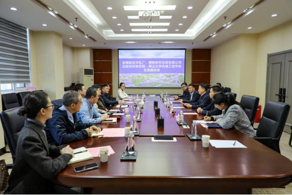 王德松对宝钢股份冷轧厂、钢铁研究总院有限公司功能材料研究院的来访表示热烈欢迎,并对两方长期以来为学校事业发展提供的支持致以诚挚感谢。他指出,燕山大学应新中国工业布局而生,始终坚守“匠心为国铸重器、矢志不移育英才”的初心和使命。机械工程学院作为学校办学特色的集中体现,坚持以重型机械及装备为核心特色,在深耕自主创新的同时,注重与行业优质力量开放协作,与龙头企业、顶尖科研院所保持紧密联动。此次三方携手开展党建共建,既是推进产教融合、科教融汇的重要实践,更是三方发挥各自优势、实现资源共享、谋求互利共赢的战略抉择,期待三方以党建为纽带,推动合作行稳致远,广结硕果。