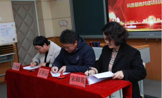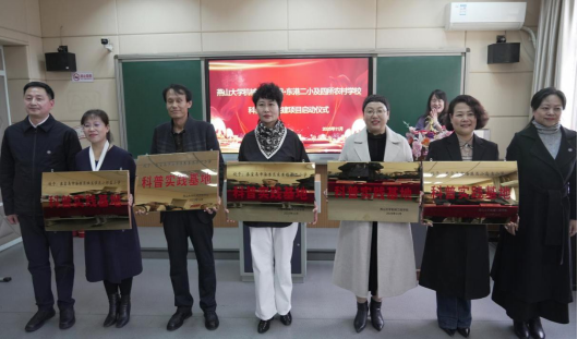 五所农村小学校长依次为科技辅导员颁发聘书;随后,燕山大学机械工程学院与五所农村小学签署《共建科普实践基地合作协议》,并为他们授牌。