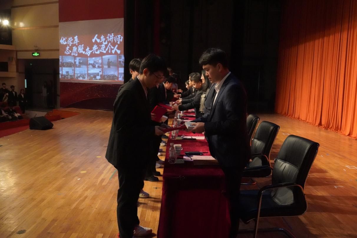 会议进入表彰环节,由刘祥城宣读学风表彰文件,播放学风表彰人员风采展示视频,并对受表彰个人与集体进行颁奖。本次表彰大会共表彰学业优异个人30名,学业进步个人25名,“优学库”志愿服务先进个人8名,机械工程学院“人气讲师”5名,学风优异寝室40间,学风优异班集体3个,学风立项优秀代表3名。