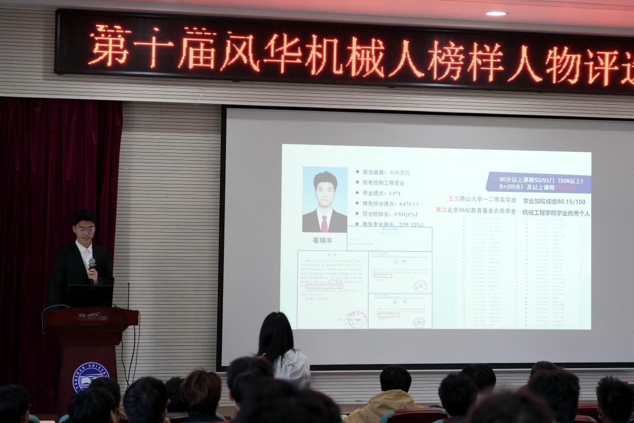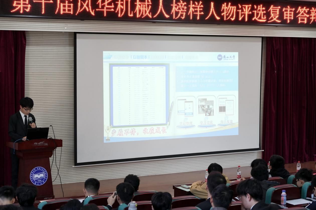 近日,机械工程学院在机械馆J3举办第十届“风华机械人”榜样人物评选复审答辩活动。本次活动旨在选树在学术科研、科技创新、社会实践等方面表现突出的学生典型,营造奋发向上的学习氛围。复审采用线上直播与线下答辩相结合的方式开展,学院团委书记、研究生辅导员王世运,学院各学生组织代表,2025级各班学生代表共同担任评委。