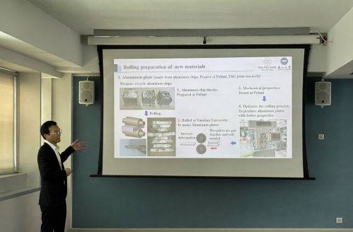 在专题交流环节,双方围绕重型机械前沿方向和重点研究领域进行研讨。代表团结合学院、系部及科研平台建设情况,介绍研究方向、科研基础和国际合作思路,交流了学院在冶金机械、流体传动等领域的研究情况。米兰理工大学Carlo Mapelli教授、Nora Lecis教授、Enrique M. Castrodeza教授分别介绍了欧洲科研项目组织实施情况及研究领域进展。