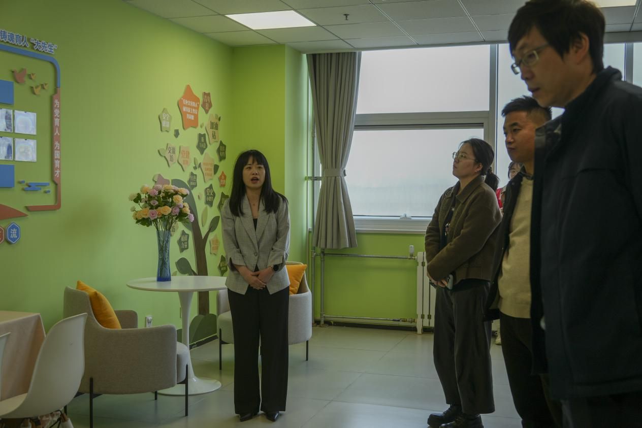 随后,辅导员王昕琦作为工作室代表,就教育部首批辅导员名师工作室“王银思工作室”的建设情况作了专题介绍。她从工作室的创建背景、功能定位、运行机制及育人成效等方面进行了详细汇报,重点展示了工作室在辅导员队伍建设、学生思想引领、品牌活动打造等方面的特色做法和典型案例。来访代表表示深受启发、受益匪浅,并希望后续能进一步深入交流和学习。
