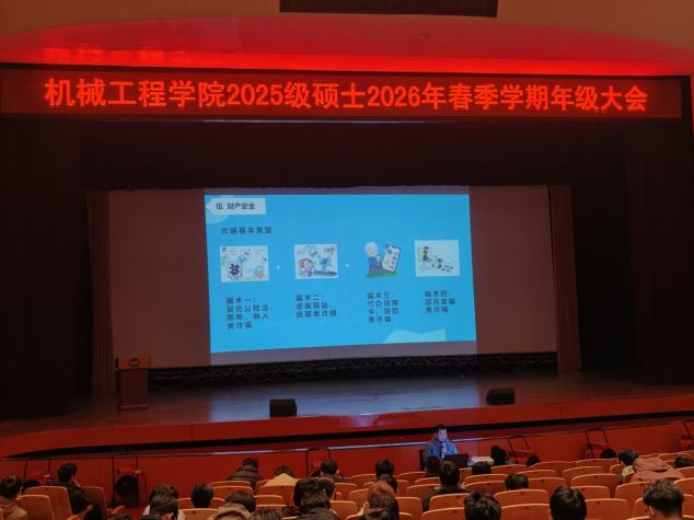 新学期伊始,为推动各项学生工作高效落地,助力全体学生尽快收心归位、调适学习生活状态,机械工程学院组织召开春季学期年级大会。会议从身心安全、消防安全、交通安全、言行安全、诈骗防范、保密专题六个模块展开,结合警示案例与校园管理新规开展系统宣讲,同时精准对接不同年级学生的成长特性与阶段性发展关键节点,量身定制差异化专项教育引导方案,多措并举夯实育人根基,为学生的健康成长与全面发展保驾护航。
