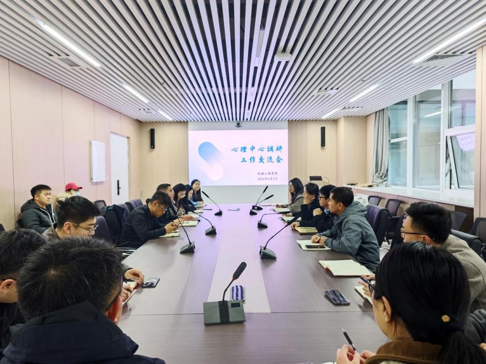为进一步完善协同育人机制,夯实学生心理危机干预工作基础,提升心理健康教育工作的实际成效,2026年4月2日,学校心理健康服务中心主任陶建刚、教师高雅楠应邀来院,与机械工程学院联合开展心理健康教育工作交流研讨会。会议由韩冰主持,正处级辅导员郝海滨、副处级辅导员刘祥城及全体辅导员共同参会